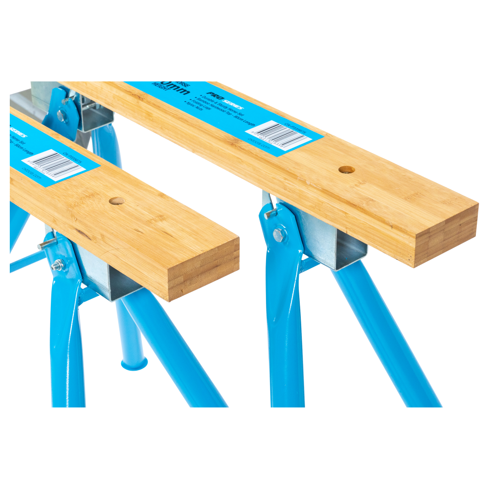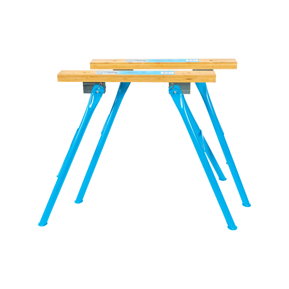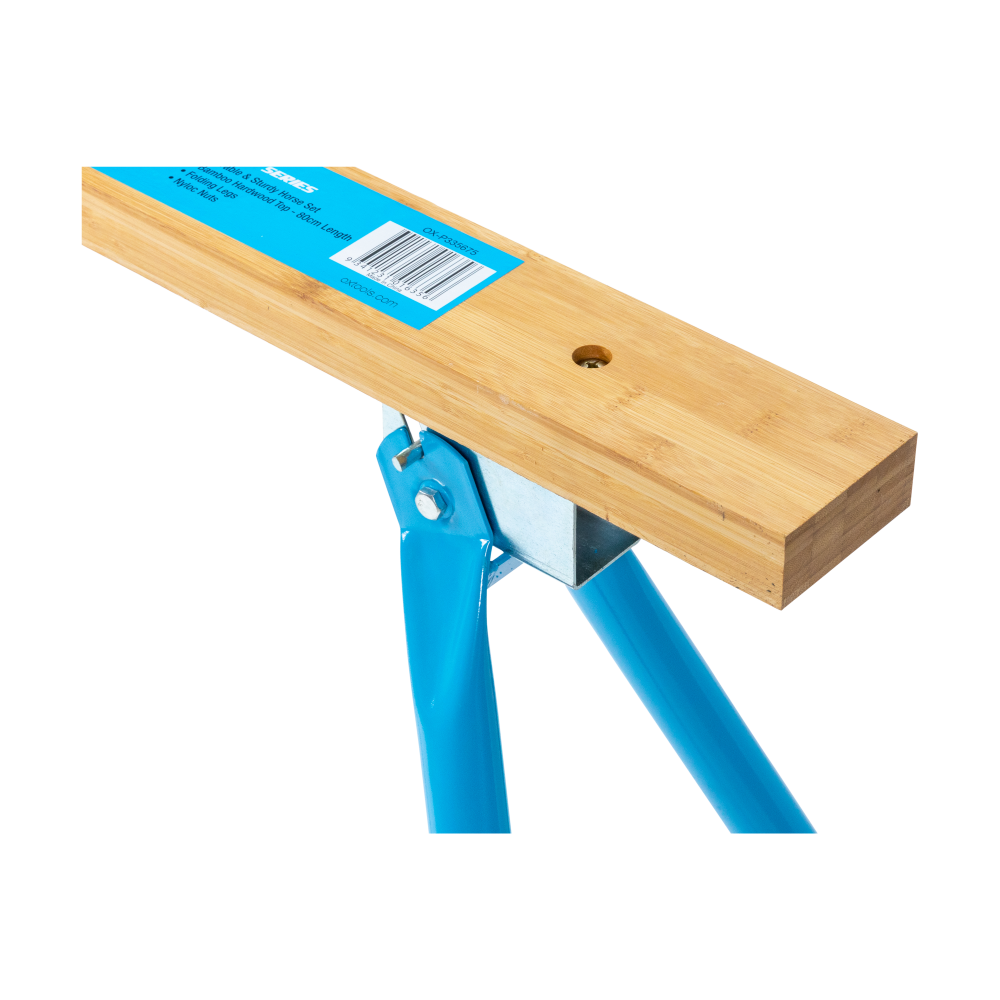 The OX Pro 750mm Saw Horse Set provides sturdy support on the job site with folding legs, offering a 750mm working height. Its solid 800mm bamboo benchtop and locking legs ensure stability and safety. Sold as a pair, these sawhorses boast a 200kg load capacity, making them reliable for various tasks.