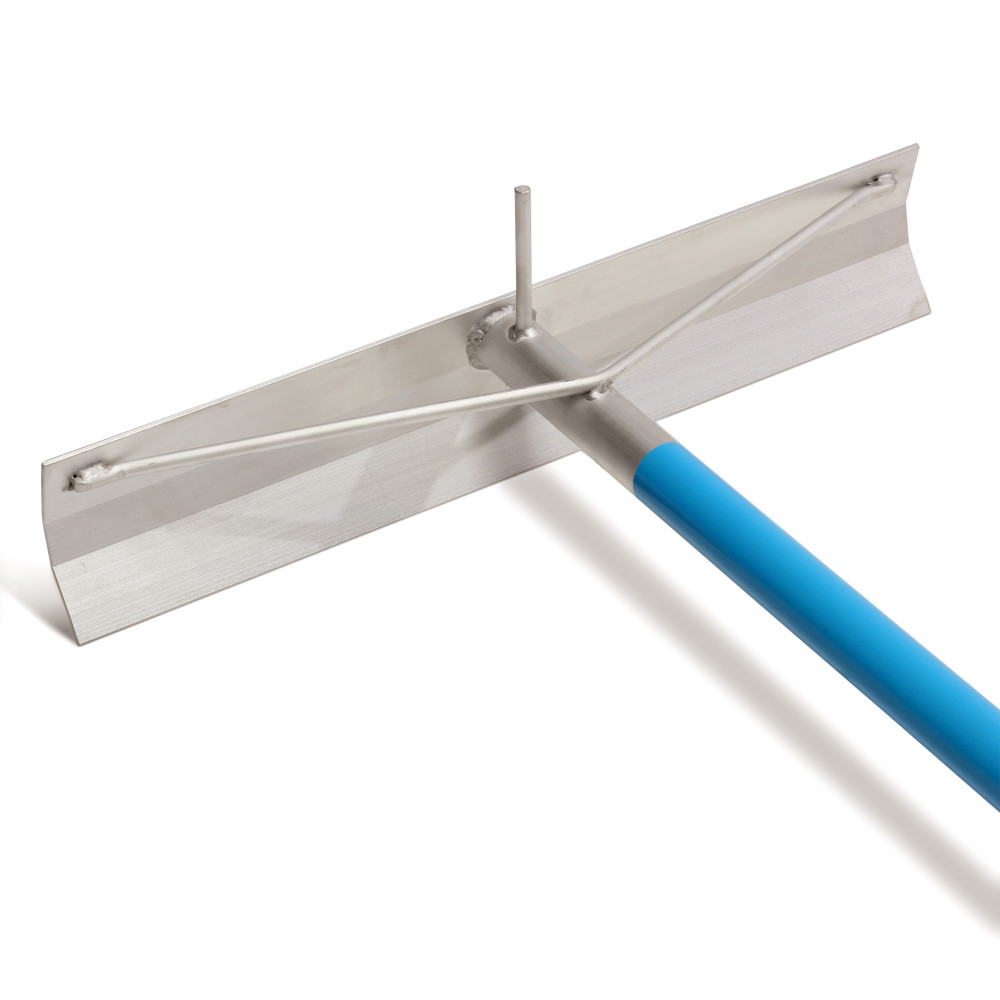 Built with the tradesman in mind, the OX Pro Aluminium Concrete Rake with hook is a testament to functionality and efficiency in the construction realm. Crafted from lightweight trade extrusion, this rake is specifically designed for concrete work, devoid of a hook for seamless movement through wet concrete, aggregate, and blue metal. Its 45-degree edge angle facilitates the easier manipulation of materials, ensuring smoother and more efficient workflow. The rake boasts a 1500mm handle length equipped with a soft grip, ensuring comfortable handling and reducing strain during extended use. With a rake width of 100mm x 500mm, it offers ample coverage for efficient concrete spreading. The powder-coated finish not only enhances its durability but also simplifies the cleanup process, making it an indispensable tool for tradespeople seeking reliability and practicality in their concrete work.