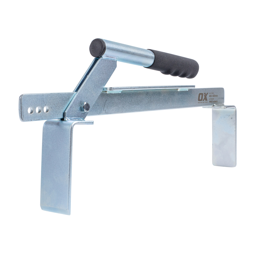 The OX Pro Brick Carrier, crafted for professionals, features robust all-steel construction with an adjustable jaw capacity suitable for holding 8 to 12 bricks. With dimensions ranging from 400mm to 500mm, it ensures efficient and secure brick handling on the job site.