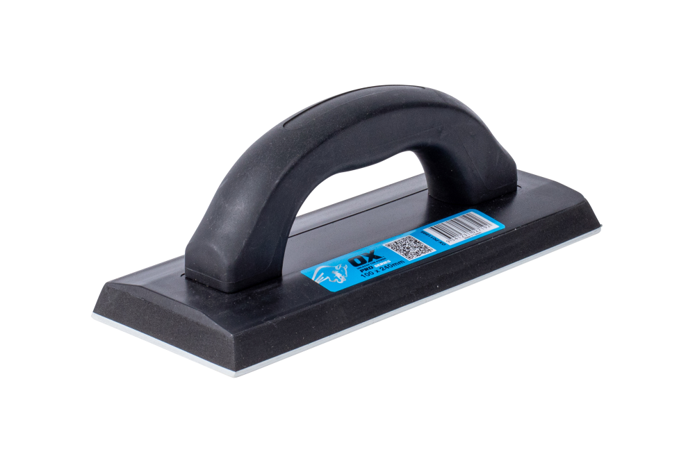 The OX Pro Double Rubber Grouter, sized at 100mm x 240mm, is a rectangular tiling grouter with an aluminium backing pad. It features an ergonomic plastic handle and a gun rubber blade with bevelled edges for precision. The plastic backer with foam cushion ensures even pressure during grouting. Available in various sizes, this tool provides versatility and efficiency for tiling projects.