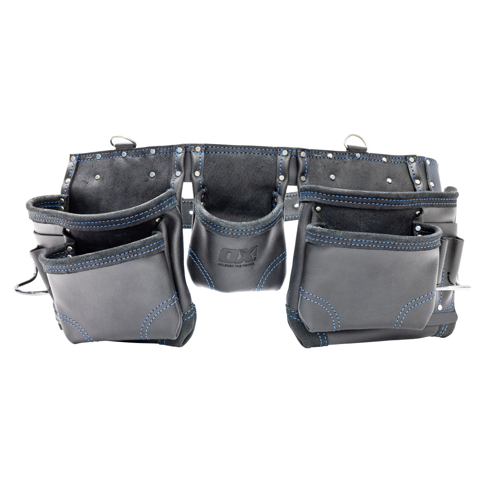 OX Trade Black Leather 12 Pocket Construction Apron