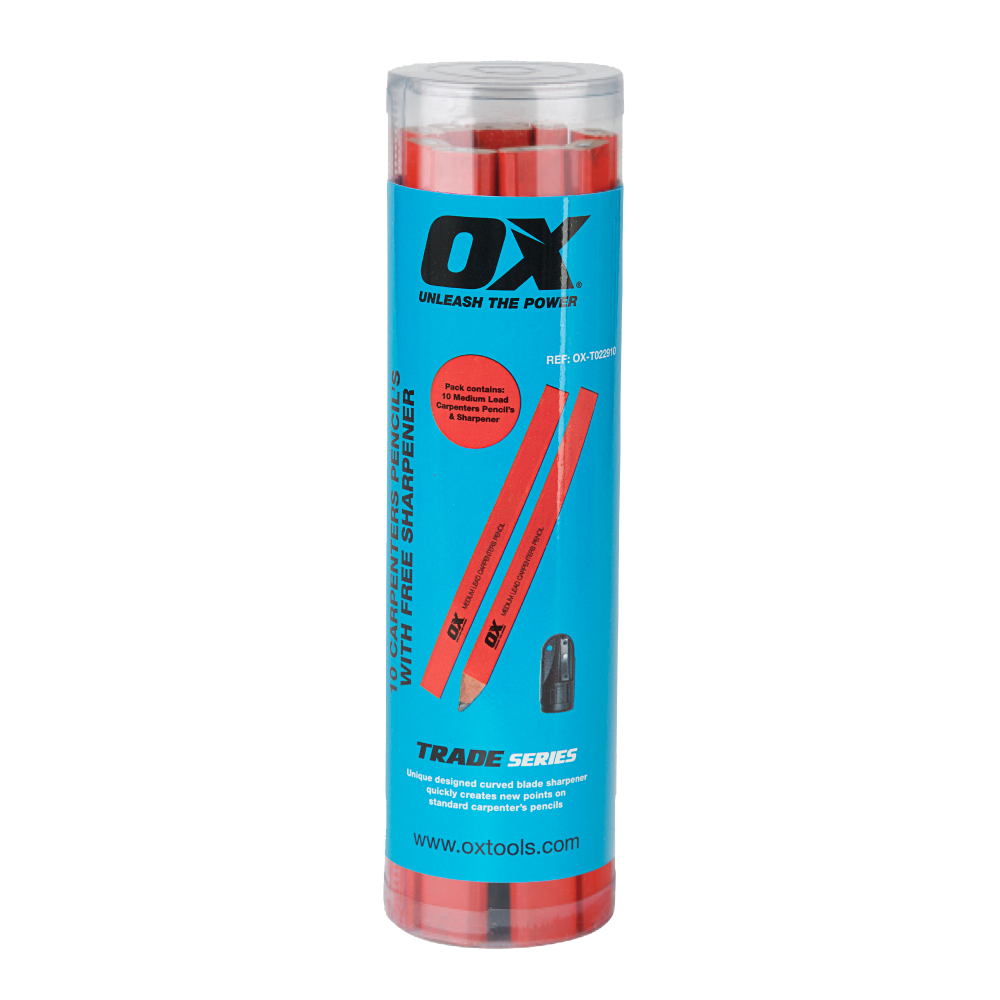 Built with the tradesman in mind, the OX Carpenters Pencils are crafted to meet the demands of professionals in the construction and carpentry industry. These pencils feature a medium lead, specifically designed for marking on rough surfaces, ensuring clarity and precision in every stroke. The traditional chamfered rectangle shape provides ergonomic comfort during prolonged use, making them an ideal choice for masonry and concrete applications. OX’s commitment to quality is evident in the high-grade lead used in these pencils, guaranteeing durability and consistent performance. Whether you are framing, measuring, or marking cut lines, the OX Carpenters Pencils deliver the reliability and accuracy that tradesmen require on the job site. Elevate your carpentry experience with OX, a brand synonymous with superior craftsmanship and durability in every tool and accessory. Trust OX to be your partner in achieving excellence in your carpentry and construction projects.